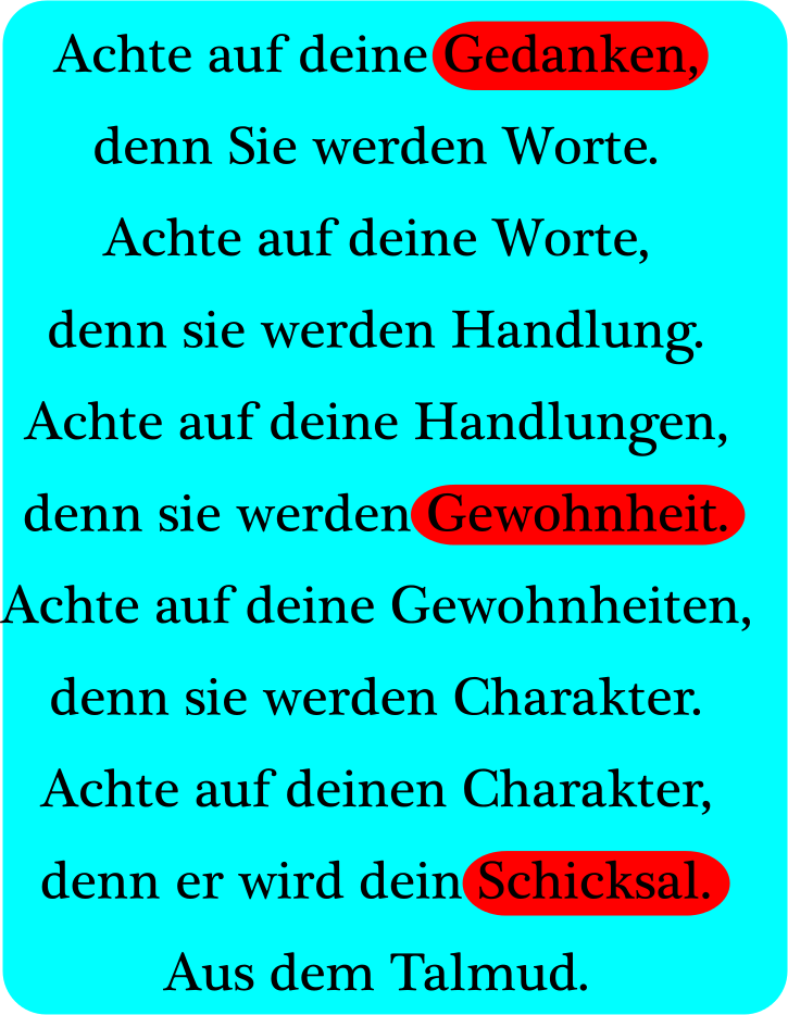Positives Denken ->lernen ->üben ->ins eigene Leben integrieren